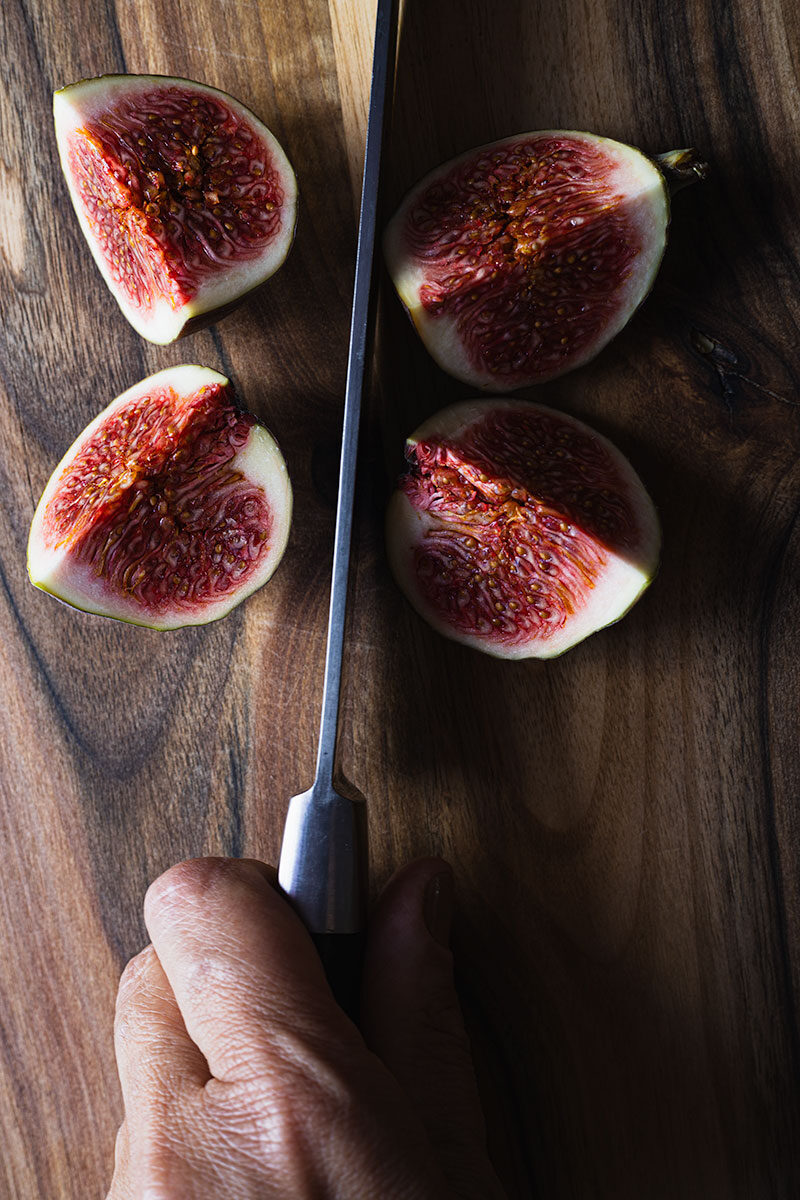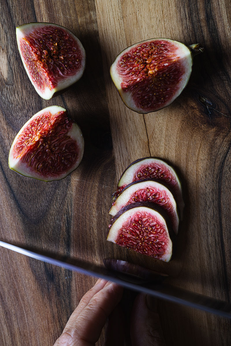 - Figi umyj i pokrój figi na cienkie plasterki.